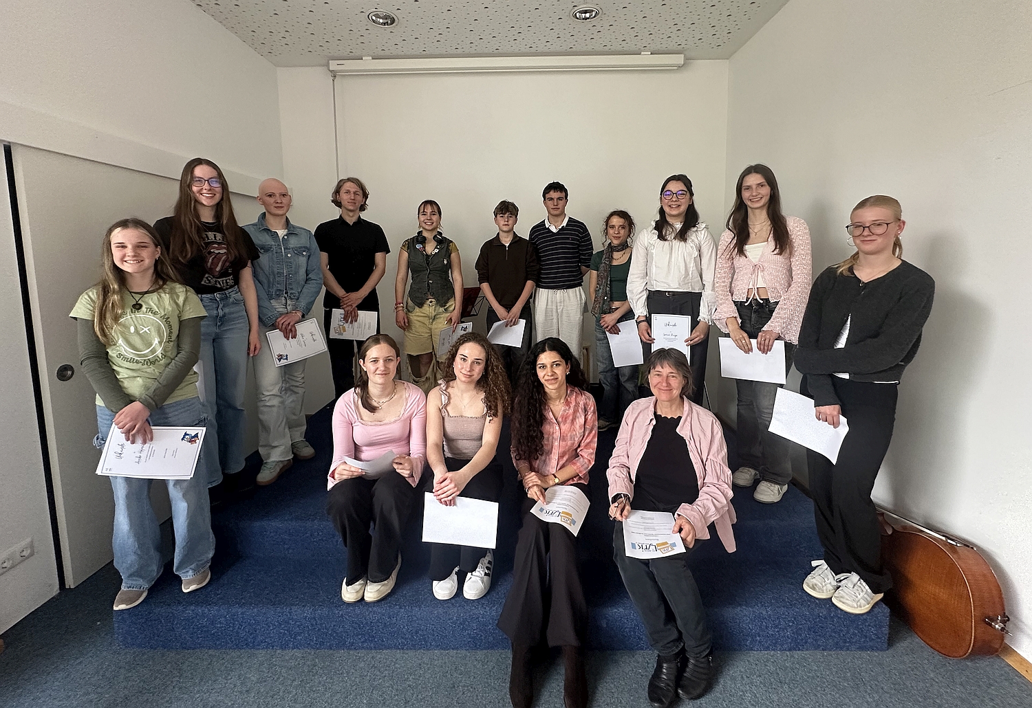 Nach einem Grußwort von Frau Hanke, der Leiterin der Stadtbücherei, trugen die Schülerinnen und Schüler ihre Gedichte vor: Annika Hofmeister (7. Klasse) „Eines Tages am Meer“, Finn Lenhardt (8. Klasse) „Hitze“, Agnes Eberle (9. Klasse) „Maskenspiel“, Katharina Joas (10. Klasse) „Ikarus lachte“, Valerie Sammer (10. Klasse) „*tauchen“, Marlon Lenhardt (11. Klasse) „TIEF“, Moritz Mühlbauer (12. Klasse) „über-mut“, Anni Lutz (12. Klasse) „Spiegelkugel“, Agata Shmygol (12. Klasse) „Wind?“, Lavinia Dunga (13. Klasse) „Der Parasit“ und Mia Gross (13. Klasse) „Frühling“. Musikalisch umrahmt wurden die Gedichtvorträge von Schülerinnen des Kammerorchesters, Isabell Siller und Penelope Kornbausch an der Violine, Luisa Nöbauer am Cello, geleitet von der Geigenlehrerin Frau Huber an der Bratsche. Als Zeichen der Anerkennung für ihr lyrisches Können überreichte Frau Hanke jeder Schülerin und jedem Schüler eine Urkunde. Außerdem erhielten alle Mitwirkenden zwei Freikarten für das Literaturfestival „Dachau liest“, wofür wir uns herzlich bedanken. Im Anschluss an die Lesung konnten sich die Zuhörerinnen und Zuhörer mit den Nachwuchspoeten über ihre Werke austauschen. Wir danken allen Mitwirkenden für ihr Engagement und ganz besonders der Stadtbücherei Dachau für die hervorragende Zusammenarbeit. Wir freuen uns bereits jetzt auf die nächste Lyrik-Lesung in der Hauptstelle.